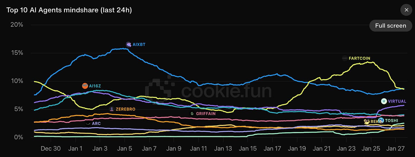Top AI Agents by mindshare