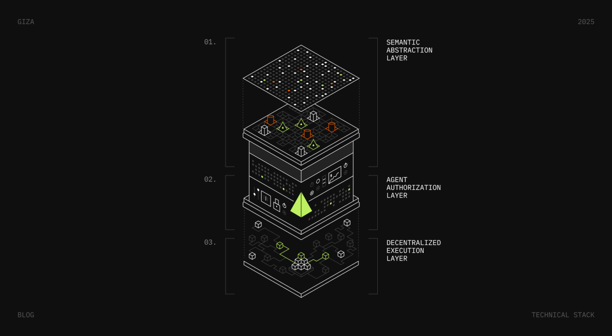 Semantic Abstraction Layer – Connects AI and blockchain securely using standardized interfaces like MCP.
